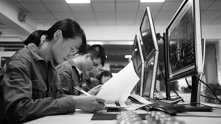 高新區(qū)企業(yè)中控室工作人員正在認真分析生產數(shù)據