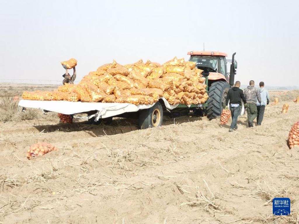 種植大戶正在裝載沙漠土豆。(新華社記者李云平 攝)