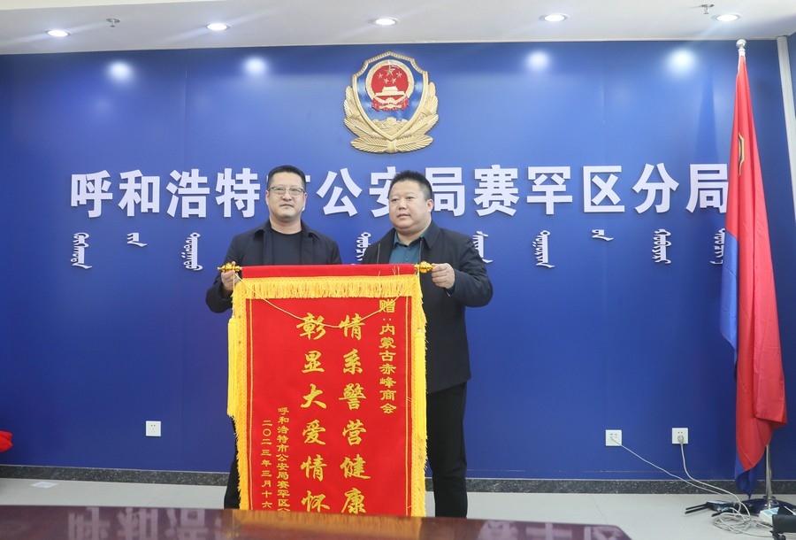 賽罕區(qū)副區(qū)長、公安分局局長趙新龍,政委郭震乾等領(lǐng)導(dǎo)熱情接待了商會和愛心企業(yè)負責(zé)人,并向商會及愛心企業(yè)贈送錦旗以示感謝。