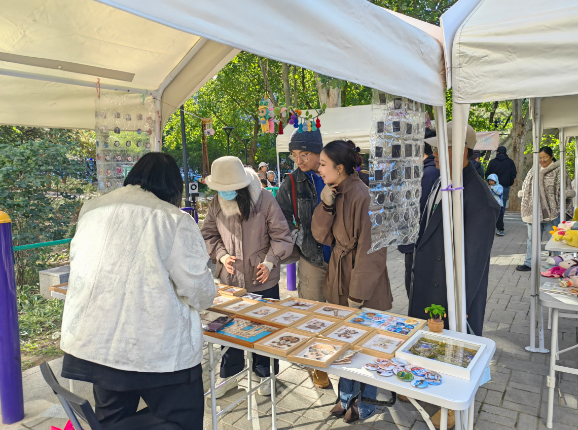 集市現(xiàn)場(chǎng)的一處展位前格外熱鬧——來自阿爾山的非遺樹皮畫,以其古樸天然的肌理和獨(dú)特的山林氣息,吸引了不少市民駐足欣賞。一塊塊白樺樹皮,經(jīng)過巧手剪、刻、拼、貼,化作栩栩如生的飛鳥走獸、林海雪原,靜靜講述著大興安嶺的故事。一旁,色彩鮮艷、針法細(xì)膩的鉤織作品,線條流暢、寓意吉祥的剪紙,同樣備受歡迎。而以阿爾山天池、杜鵑湖等標(biāo)志性景觀為靈感設(shè)計(jì)的系列冰箱貼,更是將北國壯美山水“微縮”帶入京城百姓家,成了現(xiàn)場(chǎng)的搶手貨。