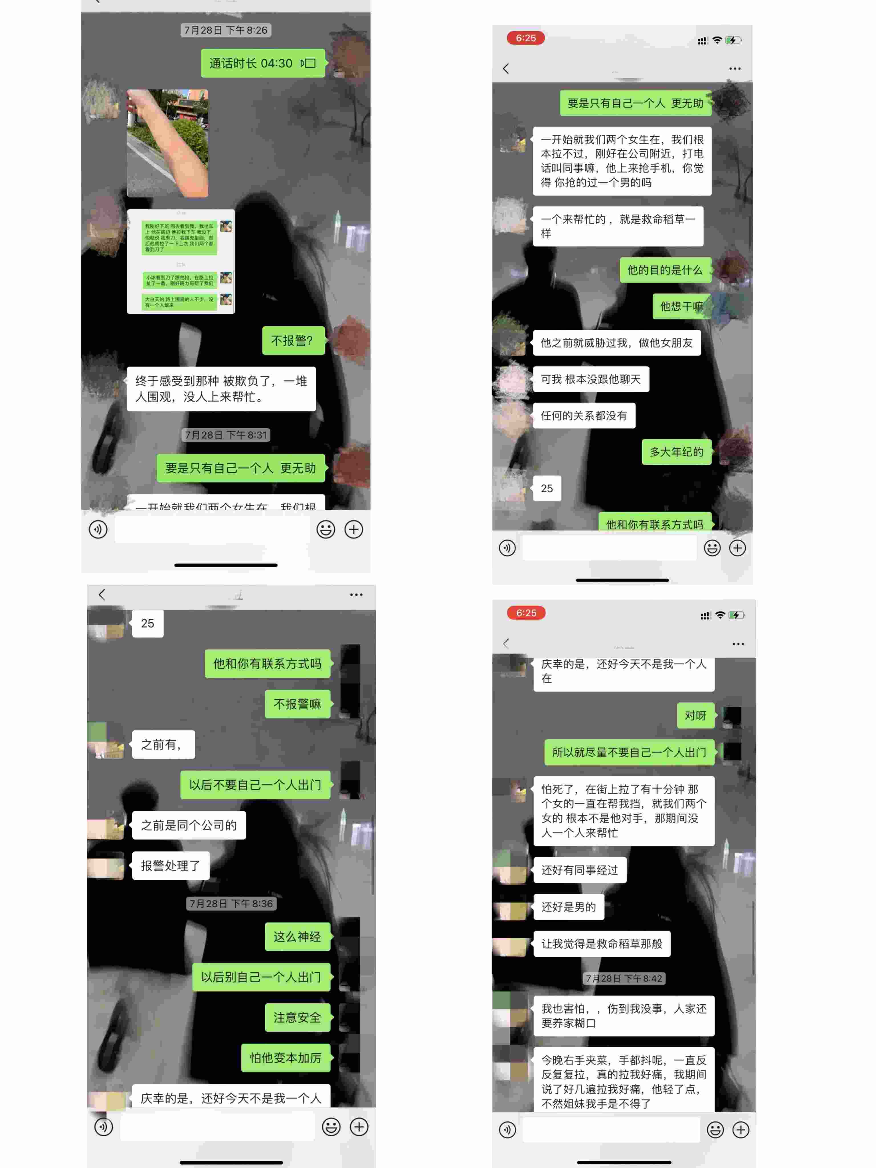 相關(guān)聊天截圖顯示,此次被黃某南威脅后,陳某萍和朋友在微信聊天時表示,“報警處理了”。陳某萍還表示,當(dāng)時,黃某南拉她上衣時,她看到了刀,感到非常害怕,幸好有同事出手相助?!八熬屯{過我,做他女朋友。可我根本沒跟他聊天,任何關(guān)系都沒有?!?/p>