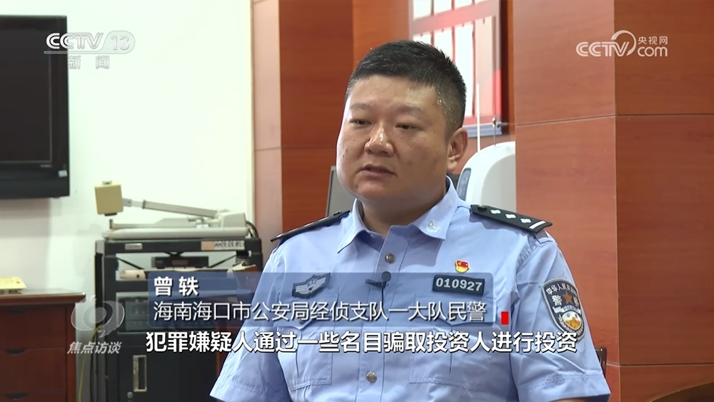 海南??谑泄簿纸?jīng)偵支隊一大隊民警曾軼:“舉報到我們??谑械慕鹑诰?,由金融局牽頭海口市多個相關(guān)職能單位,包括稅務(wù)、工商、公安相關(guān)單位一起成立了聯(lián)合調(diào)查組。這個公司如果是一個正常的新能源充電樁公司,收益會源源不斷進(jìn)入公司的賬戶,我們在調(diào)取相關(guān)銀行流水的過程中發(fā)現(xiàn)沒有。“