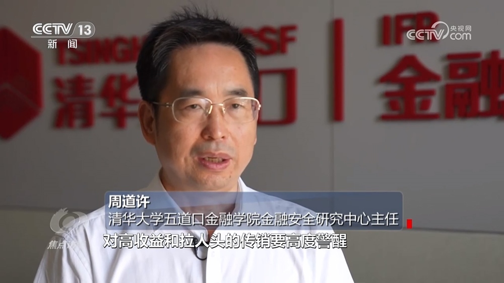 清華大學(xué)五道口金融學(xué)院金融安全研究中心主任周道許:“有兩個明顯的特征,第一個就是高回報、高收益率,誘使人投資他的項目,一般會采取傳銷拉人頭的方式來推銷他的產(chǎn)品。對高收益和拉人頭的傳銷要高度警醒,同時要借助專業(yè)的力量,頭腦一發(fā)熱錢就砸進(jìn)去了,后悔就太晚了?!?/p>