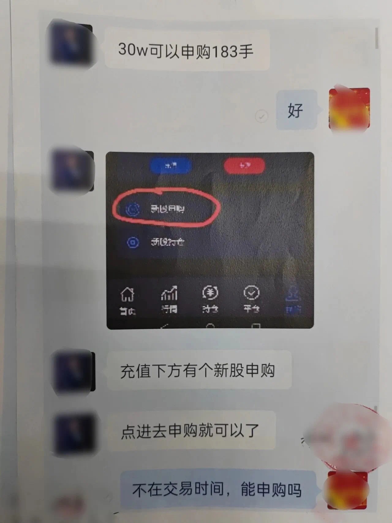 王女士平時(shí)熱衷炒股,有自己的“股友圈”。最近有人介紹給她一位所謂“神人”,加微信后方稱自己“有人”,可以輕松幫她打新股和推薦優(yōu)質(zhì)股,還讓她加群分享強(qiáng)勢(shì)個(gè)股、機(jī)構(gòu)內(nèi)部消息、私募打新策略,觀看“內(nèi)部”直播間、聽(tīng)投資“大神”講解股票知識(shí)。甚至還能“幫你爭(zhēng)取到機(jī)構(gòu)席位賬戶”,而這一切只要通過(guò)自己推薦的平臺(tái)就都能做到。