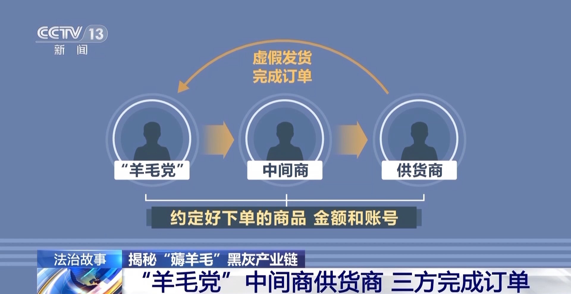經(jīng)過梳理警方發(fā)現(xiàn),這些所謂的“羊毛黨”拿到賬號(hào)后,通過中間商與電商平臺(tái)的供貨商取得聯(lián)系,三方約定好下單的商品、金額和賬號(hào),供貨商通過虛假發(fā)貨的形式完成訂單。