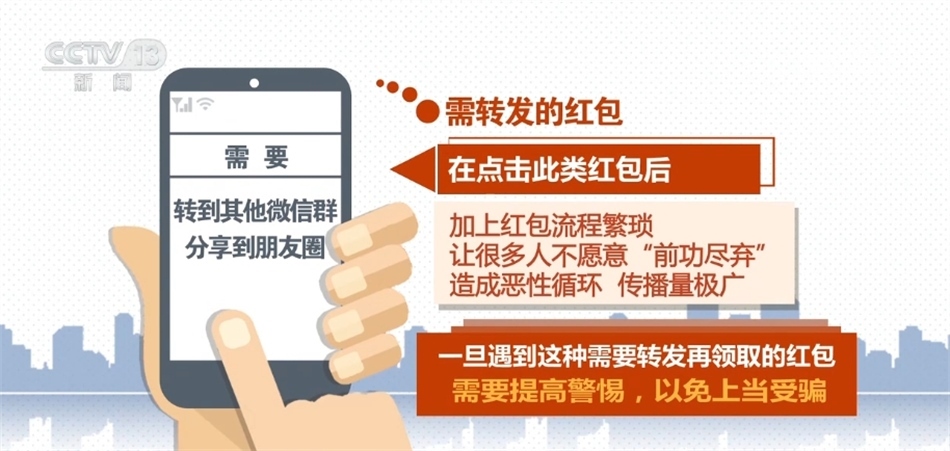 央視網(wǎng)消息:過(guò)年期間搶紅包“拼手速”成為一種新玩法。但一些不法分子卻打起了壞主意,制造了一些假紅包,企圖騙取錢(qián)財(cái)。公安機(jī)關(guān)提醒,如果看到這6種微信紅包千萬(wàn)別領(lǐng)!