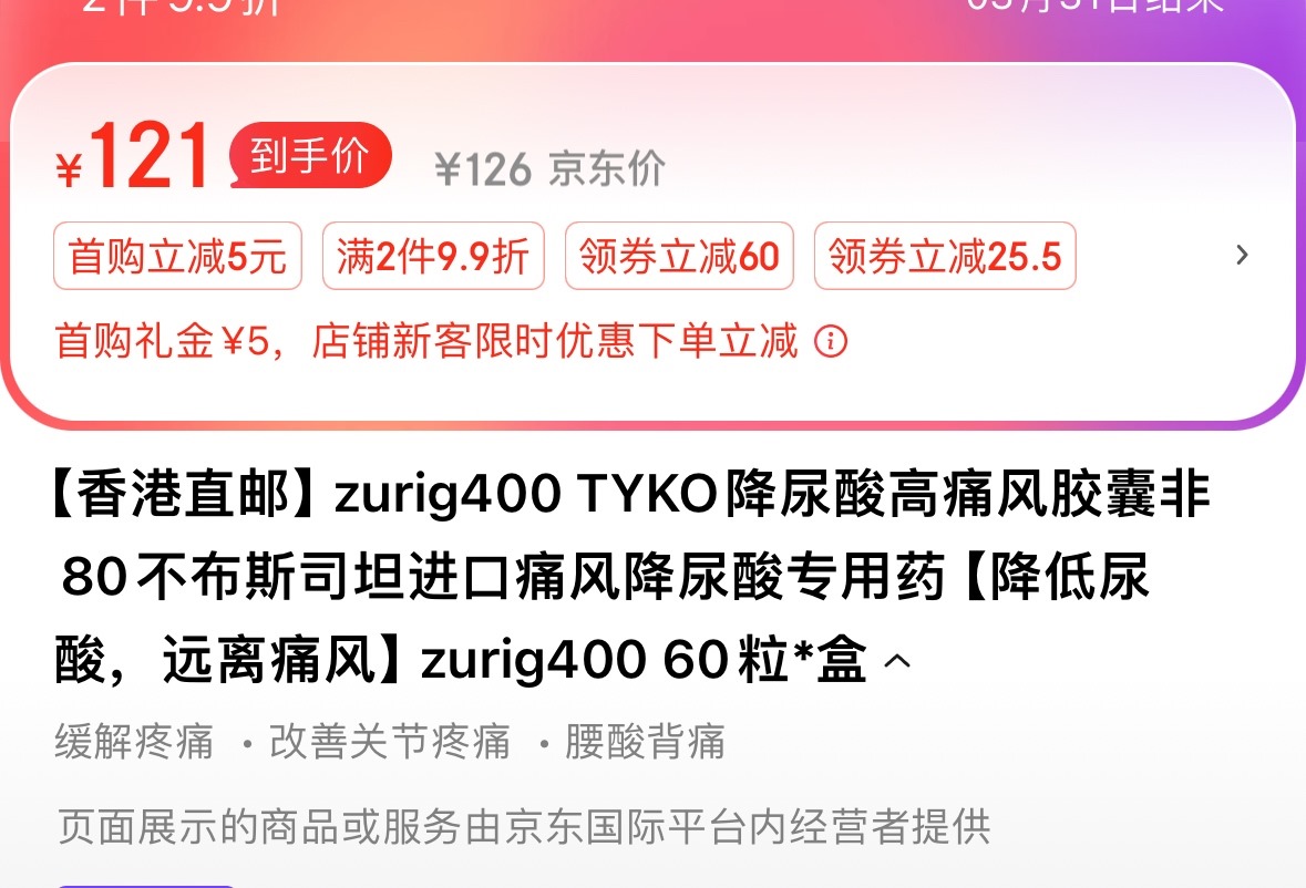 zurig400產(chǎn)品標(biāo)題宣稱“痛風(fēng)特效藥”