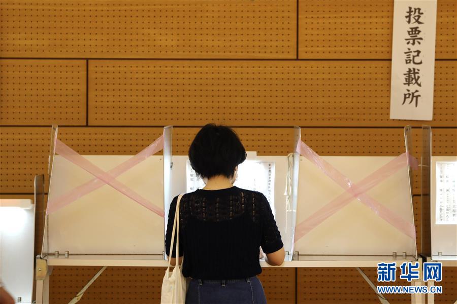 7月5日,選民在日本東京的一個投票點投票。日本東京都知事選舉于5日舉行投票。新華社記者杜瀟逸攝