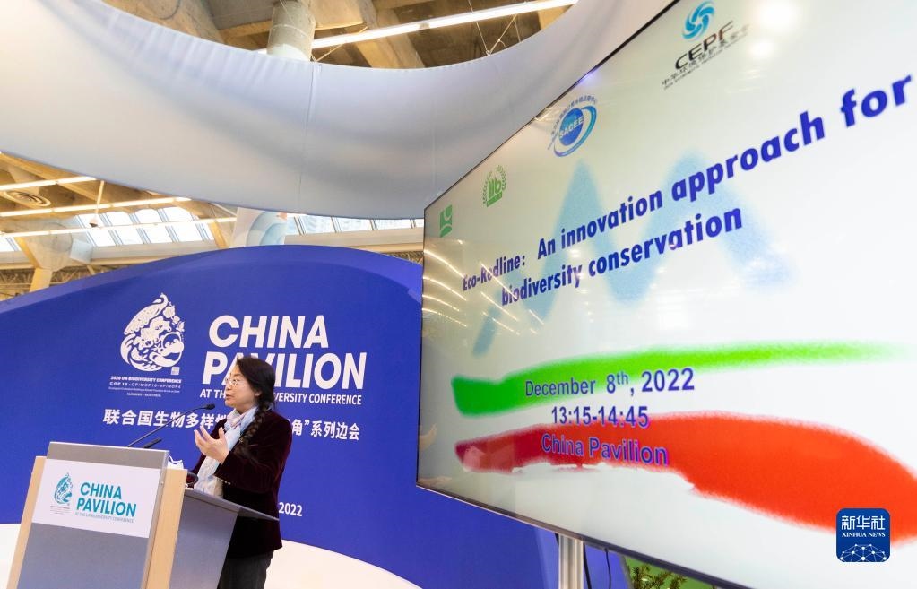 12月8日,在加拿大蒙特利爾舉行的《生物多樣性公約》第十五次締約方大會(huì)(COP15)第二階段會(huì)議上,中國(guó)角開展的一場(chǎng)邊會(huì)活動(dòng)聚焦生態(tài)保護(hù)紅線。 新華社發(fā)(鄒崢攝)
