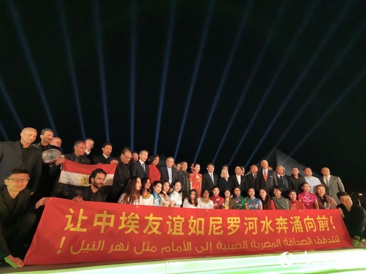 中埃兩國同為世界文明古國,人文領(lǐng)域合作空間大、潛力足。夜幕下的吉薩三大金字塔在燈光映襯下巍峨聳立,現(xiàn)場橫幅展示出“讓中埃友誼如尼羅河水奔涌向前”字樣,兩大古老文明此刻在金字塔上空相遇。音樂會(huì)的成功舉辦將成為中埃兩國文化合作新起點(diǎn)。