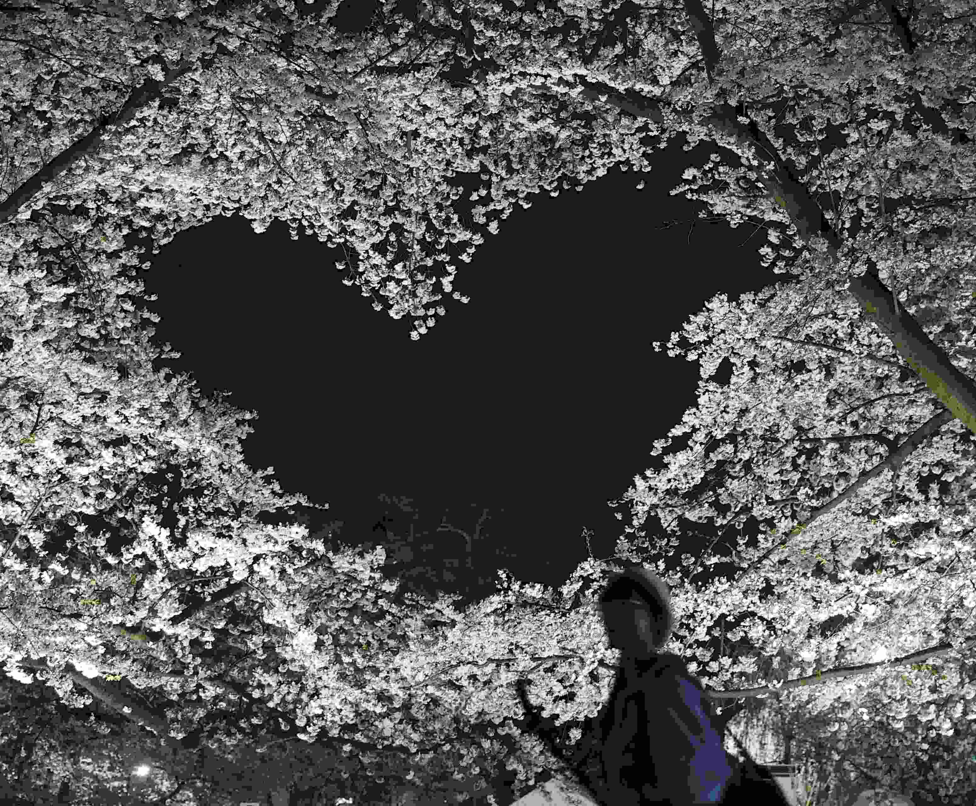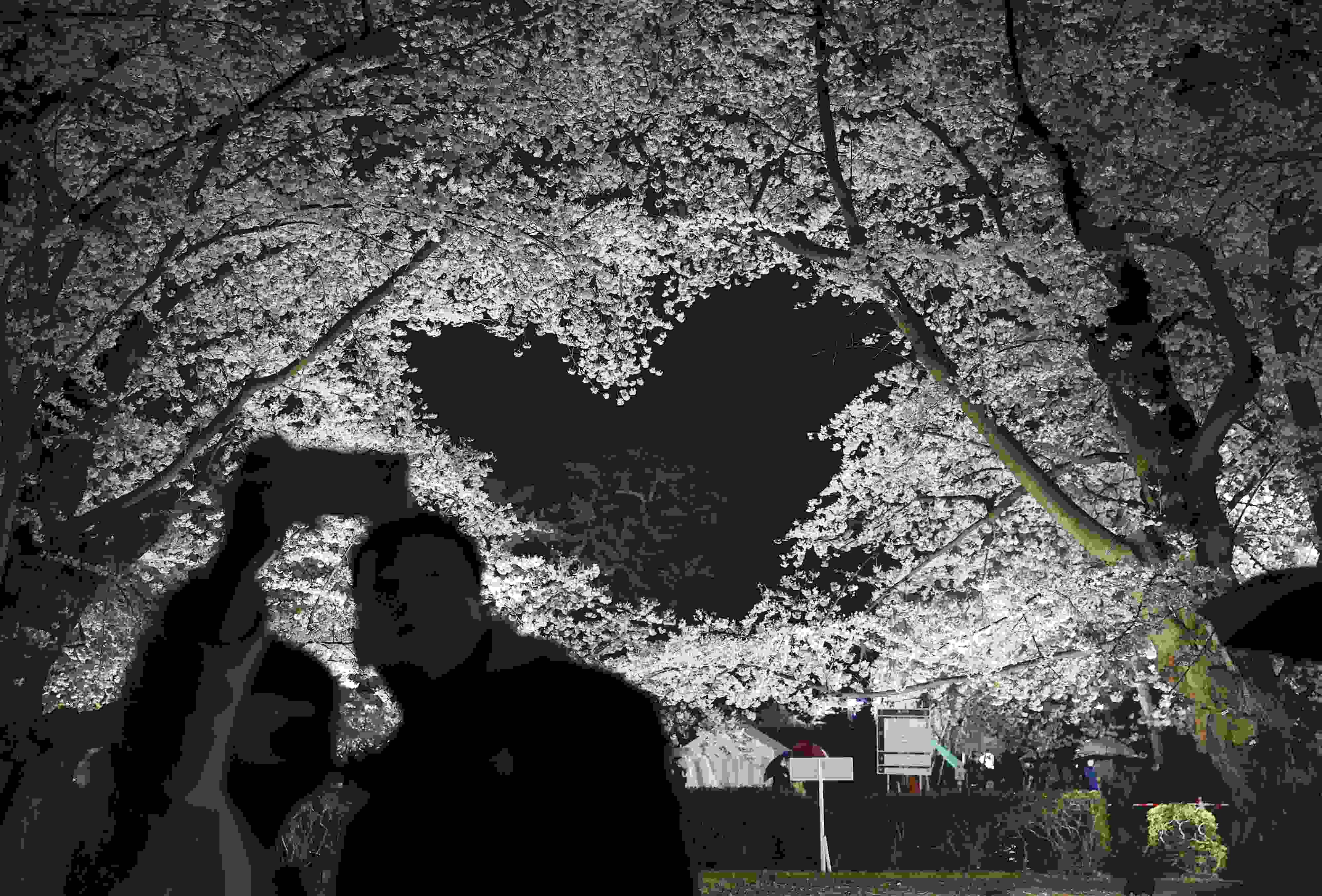 日本弘前公園櫻花盛開形成“愛(ài)心”圖案