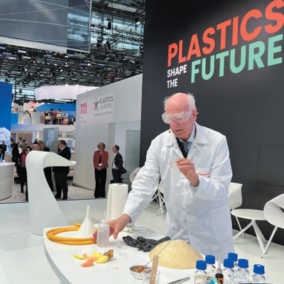 2022年10月20日,在德國杜塞爾多夫塑料展上展示的可再生塑料和回收技術(shù)。本報記者 李 強(qiáng)攝