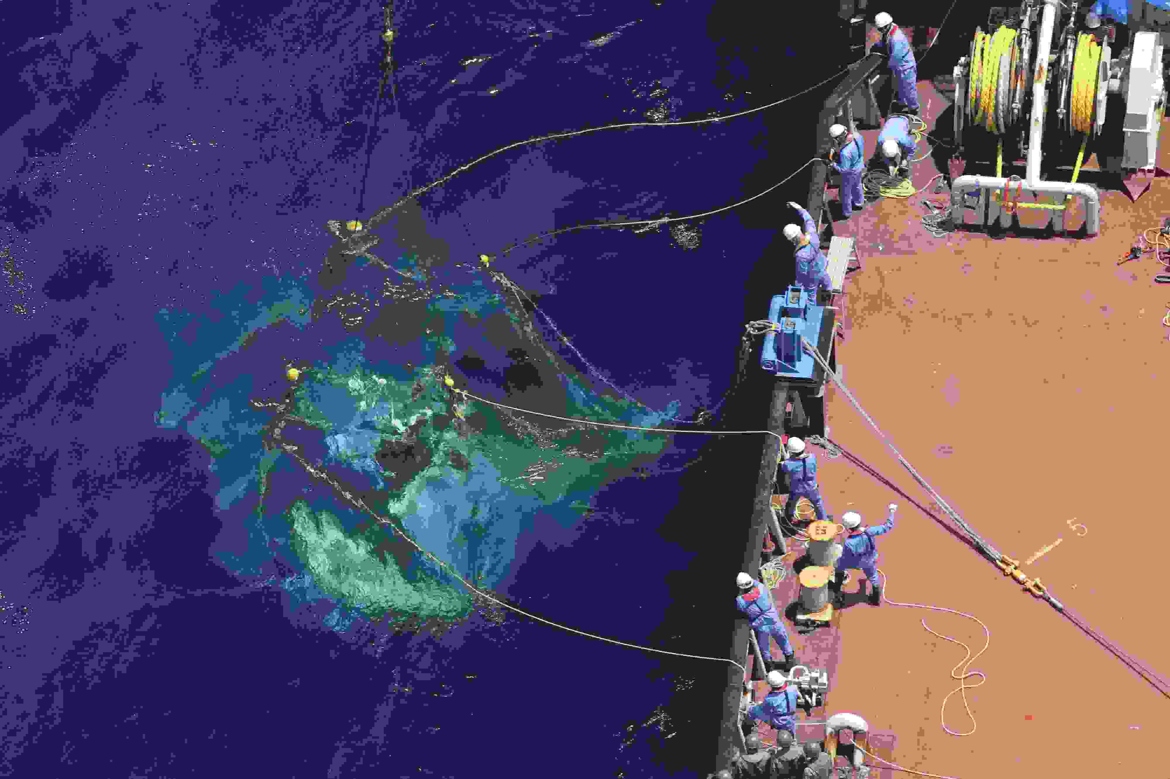 當(dāng)?shù)貢r間2023年5月2日,日本民間作業(yè)船于當(dāng)?shù)貢r間上午11時45分左右,將沖繩縣宮古島附近失事的日本自衛(wèi)隊直升機的機體打撈出海。據(jù)悉,一架日本陸上自衛(wèi)隊直升機4月6日在沖繩縣宮古島附近海域失聯(lián),失事直升機上共載有10人。 視覺中國