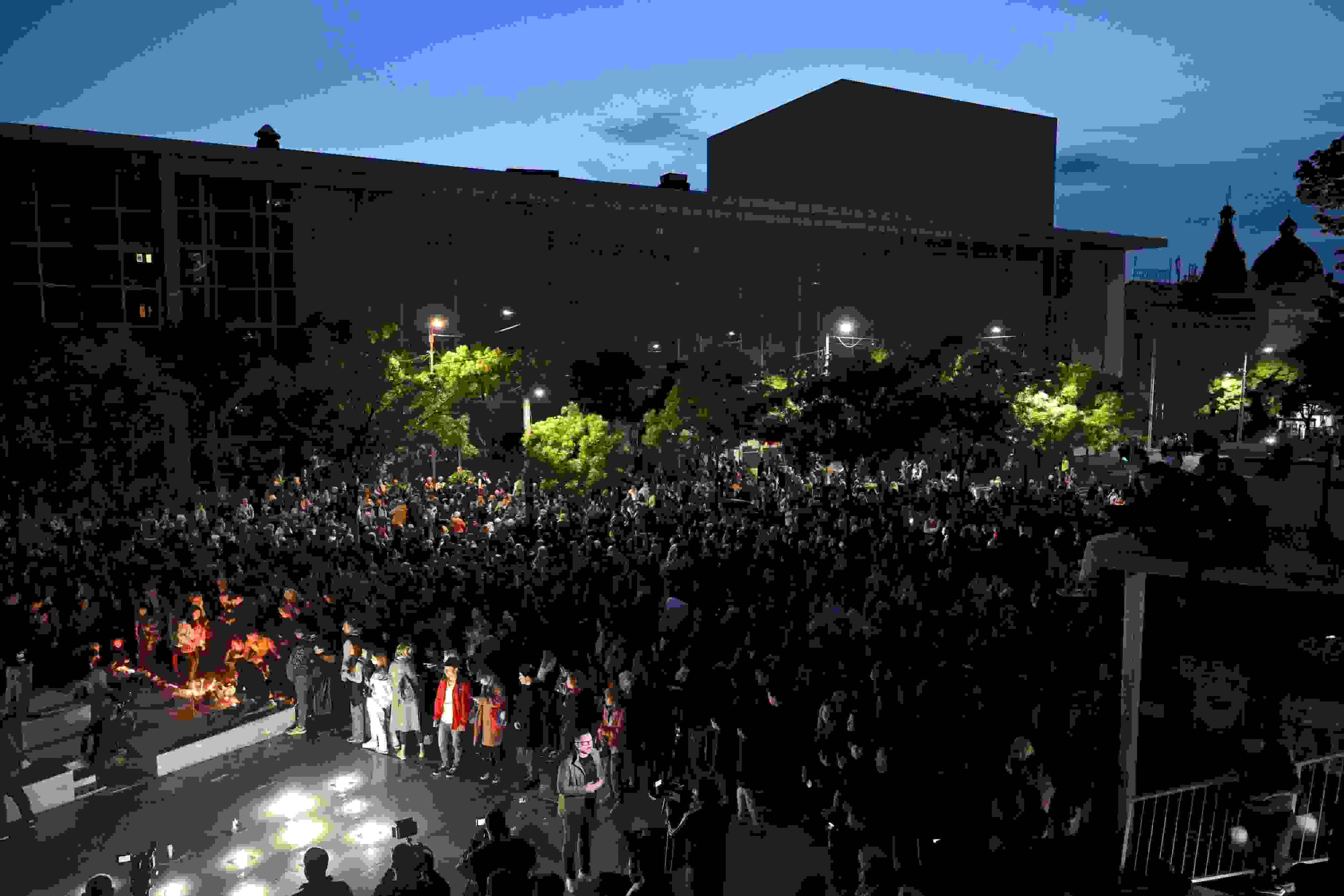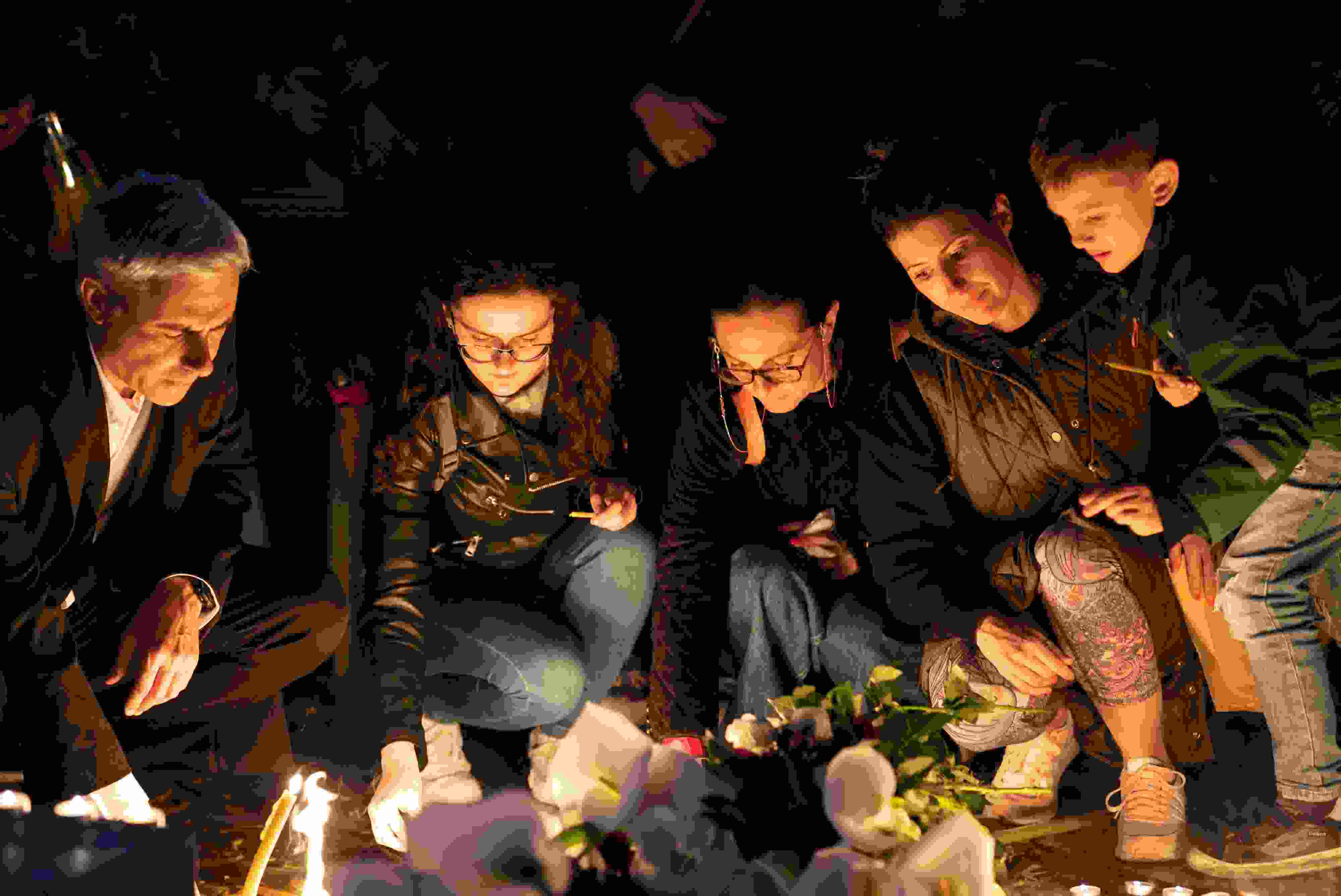 當(dāng)?shù)貢r間2023年5月3日,塞爾維亞貝爾格萊德,人們在學(xué)校門前悼念遇難者。