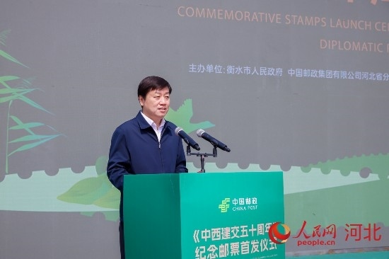 衡水市委副書記、市長董曉航在致辭中表示,郵票被譽為“國家名片”,中外聯(lián)合發(fā)行郵票是記錄國家重大外交事件和外交成就的重要載體。衡水湖榮登《中西建交五十周年》紀念郵票,向世界展示秀美風光,見證兩國友誼,感到非常振奮和自豪。衡水湖資源稀缺、稟賦獨特,素有東亞“藍寶石”、京津冀最美濕地的美譽,是全球候鳥遷徙線路上的重要驛站。在中國郵政集團的大力支持下,在人民網(wǎng)的全球推介下,衡水湖將以“郵”為媒、走向世界。