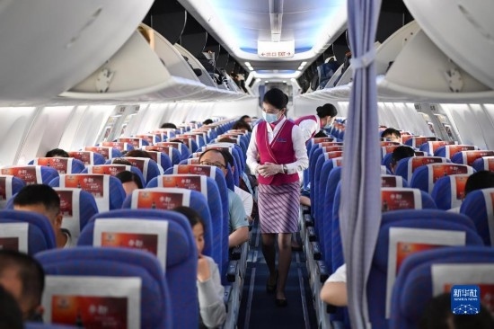 5月13日,旅客登上西安-烏魯木齊-阿什哈巴德首趟航班。