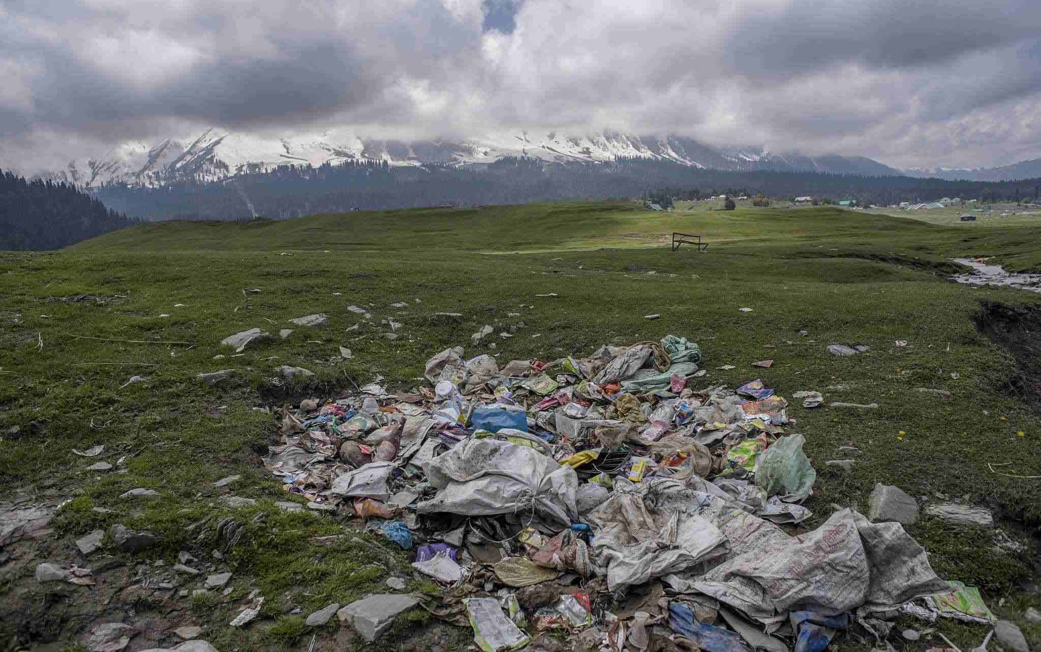 古爾瑪格,著名的滑雪勝地。在夏天,這個勝地?cái)D滿了避暑的游客并留下了大量的垃圾。垃圾的堆積對高山生態(tài)造成了嚴(yán)重威脅,也對冰川溪水造成了嚴(yán)重威脅。盡管指示牌提醒人們禁止攜帶塑料,但對攜帶食物和水沒有限制。環(huán)保人士警告說,古爾瑪格及其周邊地區(qū)的到處都是被丟棄的塑料垃圾。