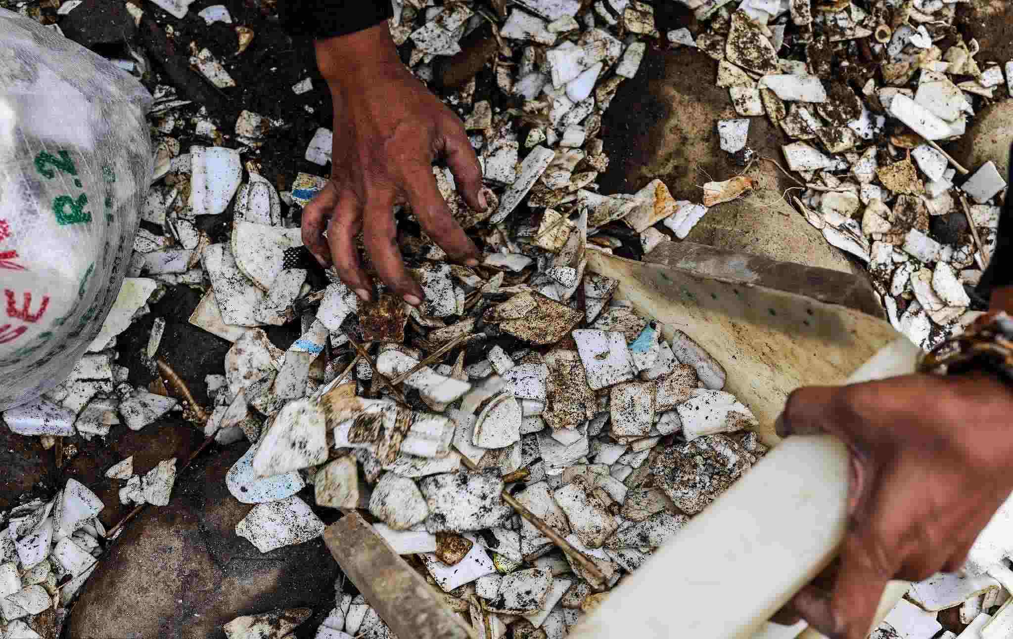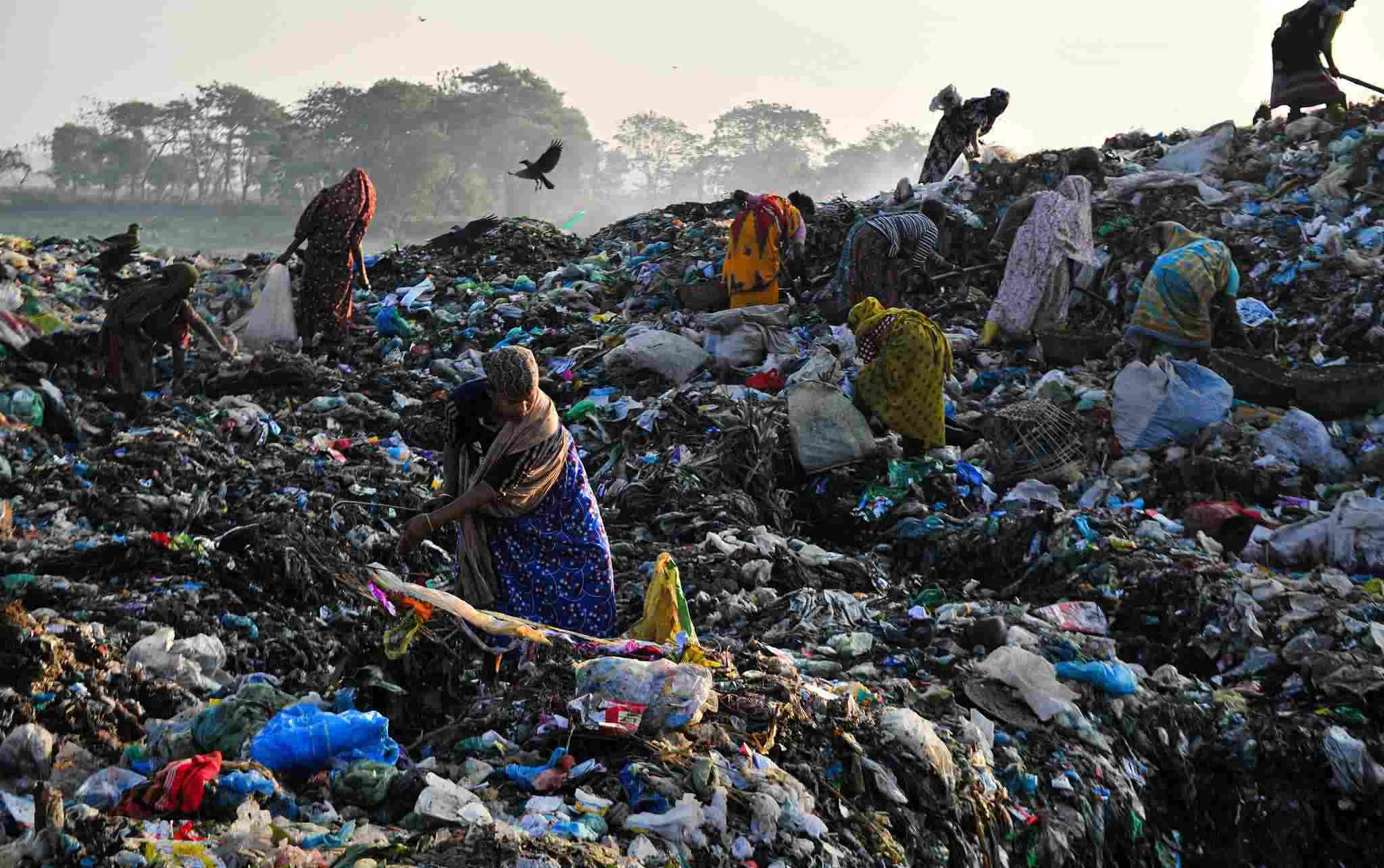 當(dāng)?shù)貢r(shí)間2023年1月2日,孟加拉國錫爾赫特,工人們在一個有毒廢物傾倒場工作。