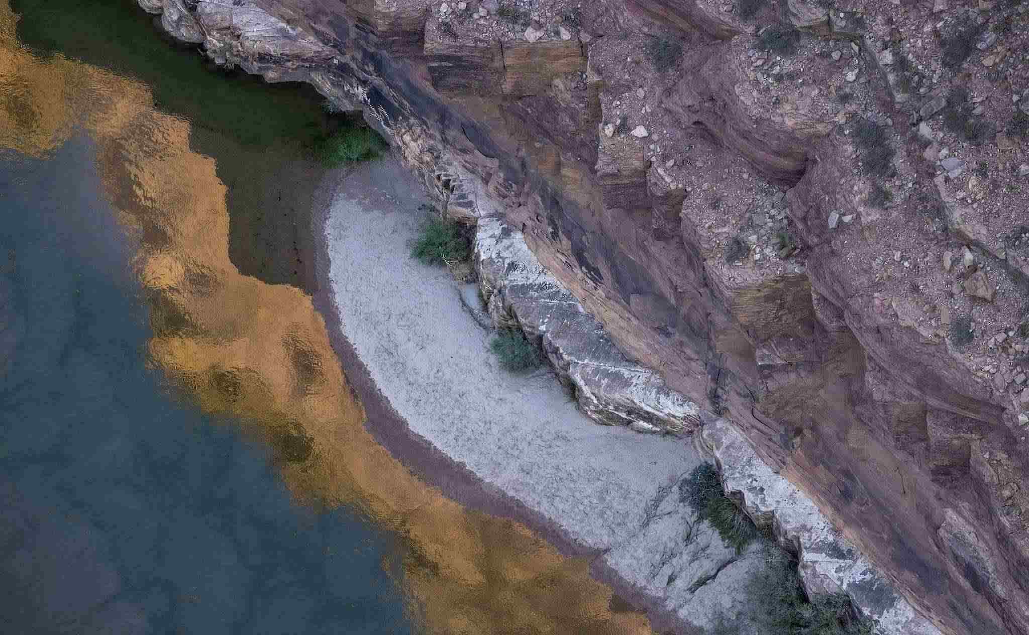 當(dāng)?shù)貢r間2022年8月31日,美國亞利桑那州,鮑威爾湖下游的科羅拉多河通過大理石峽谷時,沉積物被攪動。