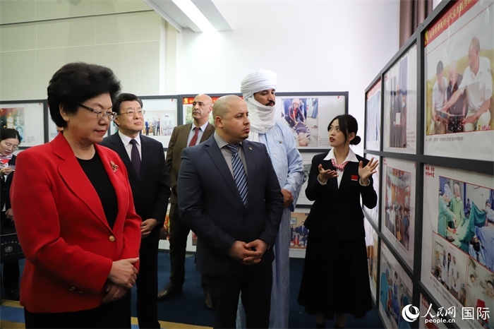 與會嘉賓參觀“60年中國援阿醫(yī)療隊(duì)圖片展”。人民網(wǎng)記者 王傳寶攝