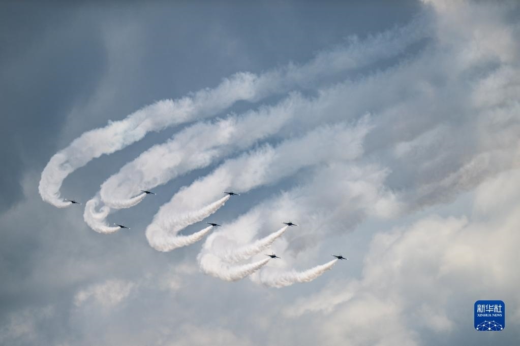 5月23日,在馬來(lái)西亞蘭卡威舉行的第16屆蘭卡威國(guó)際海事和航空展上,飛行表演隊(duì)進(jìn)行特技飛行表演。