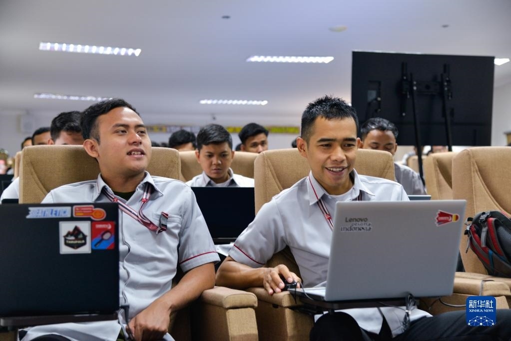 6月7日,在位于印度尼西亞茉莉芬市的印尼鐵路理工學院,學員們參加雅萬高鐵應急值守人員培訓。