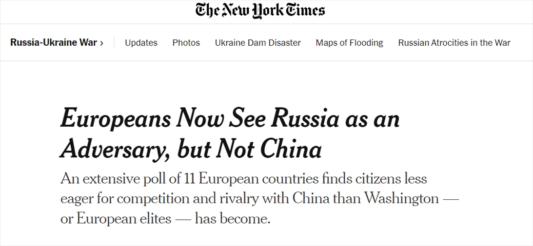 另據(jù)《紐約時報》報道,調查報告的合著者亞娜·普格利林說,歐盟委員會主席馮德萊恩的觀點更接近美國拜登政府的觀點,但歐洲大眾的真實輿論更認同法國總統(tǒng)馬克龍的觀點。