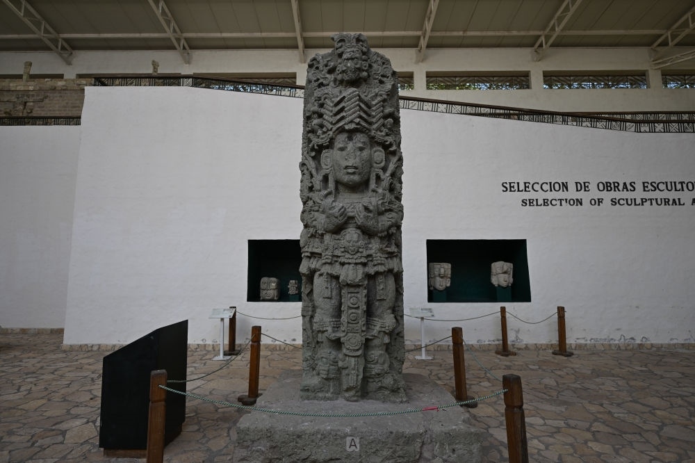 科潘遺址旁有一座國際考古隊(duì)倉庫,一排排高聳木架上堆滿石雕,凝聚著各國考古學(xué)家多年心血。