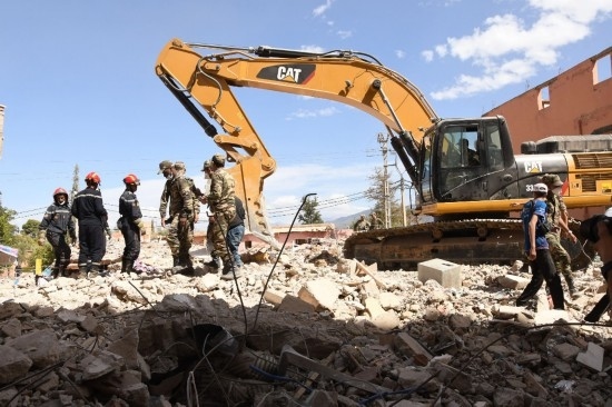 摩洛哥救援人員10日動用重型設備在災區(qū)尋找幸存者。