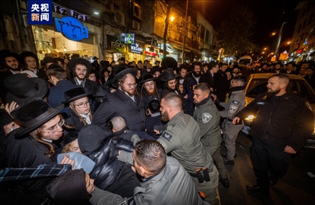 △2023年1月,以色列極端正統(tǒng)猶太人在耶路撒冷抗議宗教社區(qū)售賣智能手機,與警察發(fā)生沖突。