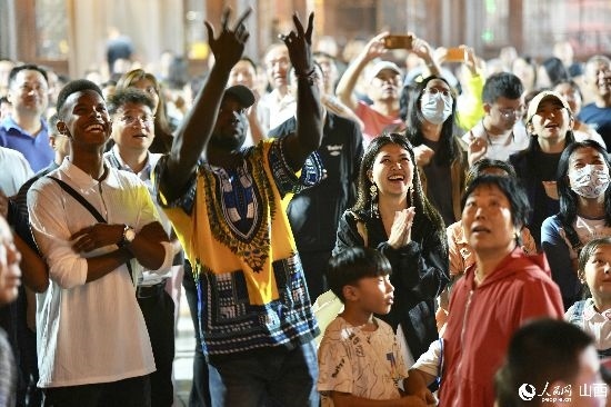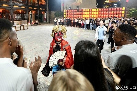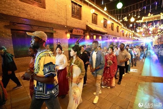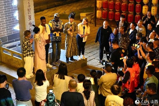眼花繚亂的民俗表演,沉浸式的古城巡游,絢爛的城樓燈光秀,陶醉的狂歡……9月15日夜晚,在即將結(jié)束山西之行的前夜,2023“漢字緣”國(guó)際故事大會(huì)決賽的選手們夜游山西省晉城市陽(yáng)城縣郭峪古城,于燈火闌珊處感受古城中的人間煙火。(人民網(wǎng) 盧鵬宇攝)