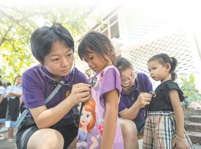 在中國民間組織國際交流促進(jìn)會的協(xié)助下,“中國—老撾先天性心臟病聯(lián)合篩查和治療”醫(yī)療合作項(xiàng)目團(tuán)隊(duì)6月中下旬在萬象、烏多姆賽省、瑯勃拉邦省等地,對近6000名3歲至18歲的幼兒園孩童和中小學(xué)生進(jìn)行先心病免費(fèi)篩查,并為部分患兒進(jìn)行治療。近年來,中國和老撾、柬埔寨等國醫(yī)護(hù)工作者攜手護(hù)佑生命,守衛(wèi)健康,為當(dāng)?shù)貎和钇鹆艘蛔靶闹畼颉??!案兄x中國醫(yī)生用先進(jìn)的醫(yī)療技術(shù),為老撾患者帶來了生命的希望?!眳⑴c活動的老撾衛(wèi)生部部長本豐由衷地說。