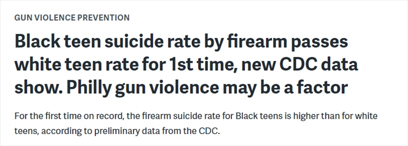 約翰斯·霍普金斯大學(xué)(Johns Hopkins University)最近的研究分析使用了2022年的初步統(tǒng)計(jì)數(shù)據(jù)進(jìn)行計(jì)算,結(jié)果顯示,2022年全美總體槍支自殺率升至歷史最高水平。研究人員還發(fā)現(xiàn),黑人青少年的槍支自殺率首次超過了白人青少年。