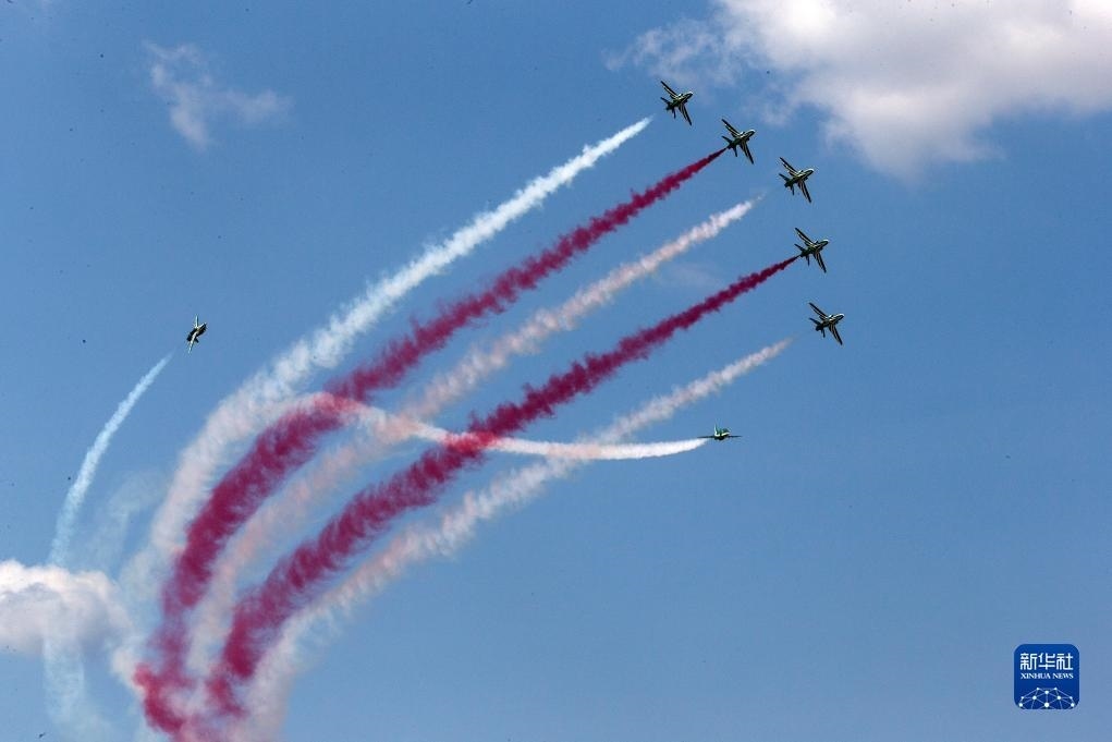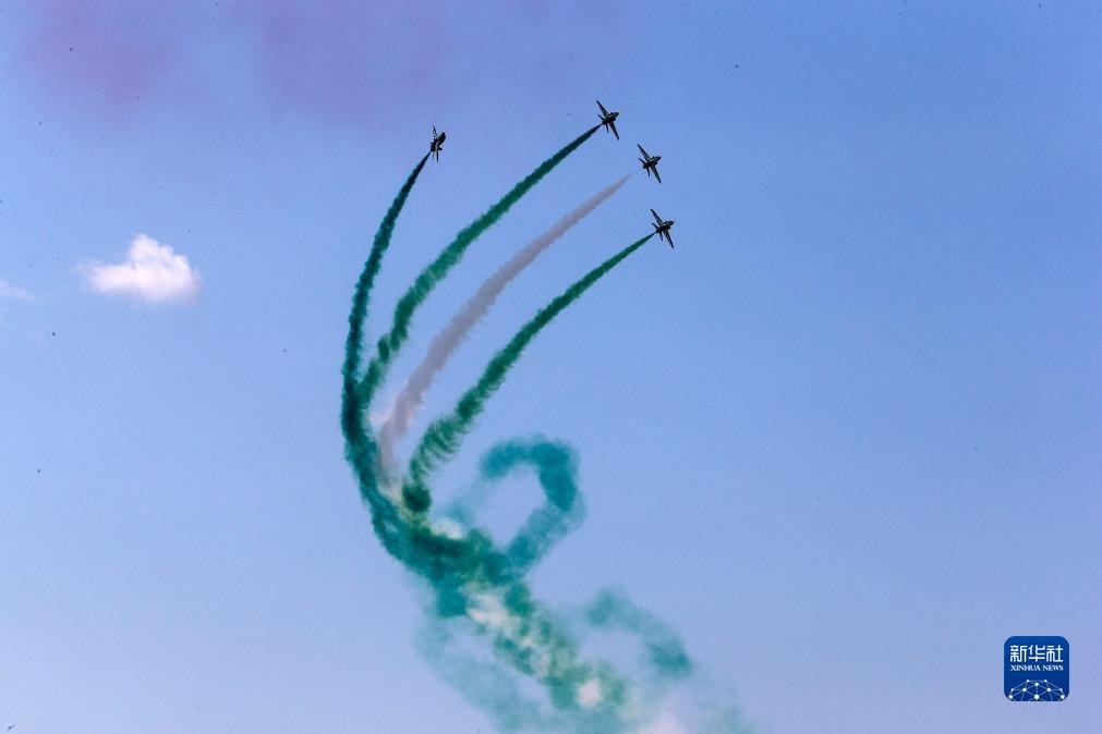9月2日,在希臘塔納格拉空軍基地的雅典飛行周上,來自沙特阿拉伯的飛行表演隊進行表演。新華社發(fā)(馬里奧斯·羅洛斯攝)