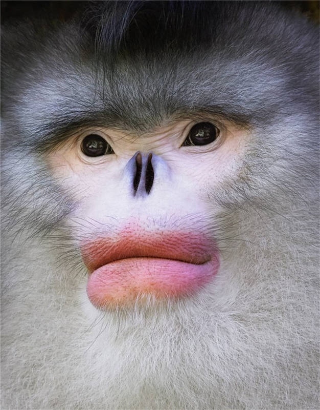 記得我和助手連續(xù)幾天反復(fù)登山,幾周后,我們終于發(fā)現(xiàn)了金絲猴。它們看起來就像做了整容手術(shù),有著大紅唇等獨(dú)特的特征。有一天,我順著山路,壓根沒在想金絲猴。突然,我發(fā)現(xiàn)在我腳邊,它正直視著我,我轉(zhuǎn)身按動(dòng)快門,抓拍到那張近距離的動(dòng)物肖像。