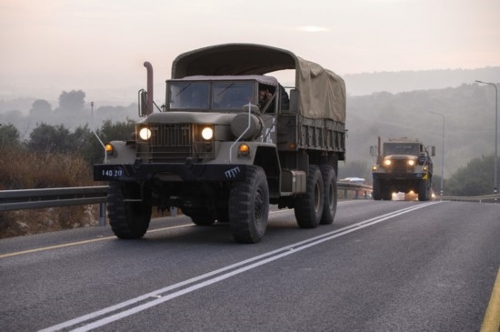 10月8日,以色列軍用車輛在北部靠近黎巴嫩邊境區(qū)域的道路上行駛。新華社發(fā)(阿亞爾·馬戈林?jǐn)z/基尼圖片社)