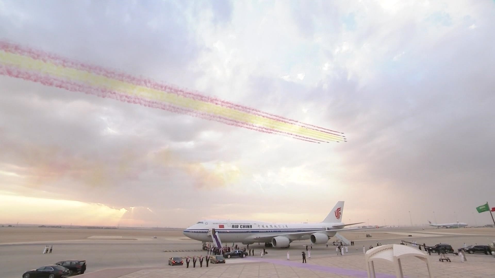 過去7年,在兩國元首共同推動下,中沙務(wù)實合作迅猛發(fā)展。2022年12月,時隔6年,習(xí)近平主席對沙特再次進(jìn)行國事訪問。當(dāng)習(xí)近平主席乘坐的專機(jī)進(jìn)入沙特領(lǐng)空,沙特空軍4架戰(zhàn)機(jī)升空護(hù)航,禮賓護(hù)衛(wèi)機(jī)在空中拉出象征中國國旗的彩帶,沙特用最高禮遇迎接來自中國最尊貴的客人。