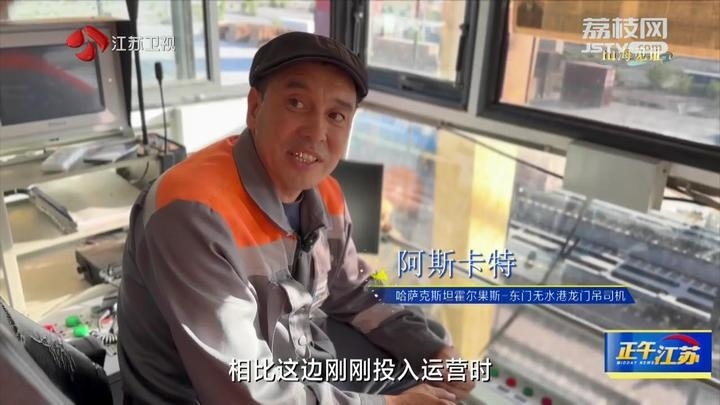 哈薩克斯坦霍爾果斯-東門無水港龍門吊司機阿斯卡特說:“相比這邊剛剛投入運營時,運輸量有非常明顯的增加。原來每天1-2列,現(xiàn)在7-8列通過。我收入有增多了,來這之前是3個小孩,現(xiàn)在是5個小孩。”