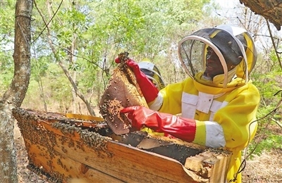 齊邦巴村如今已有500多戶農(nóng)戶加入蜂蜜合作項(xiàng)目。村里的蜂農(nóng)召集人貝納德告訴記者,一個(gè)蜂箱一年收蜜一次,每次能采出25至30公斤蜂蜜,10個(gè)蜂箱加起來可以帶來約5000贊比亞克瓦查(約合222.5美元)的收入?!爸袊袌?chǎng)很大,與中方合作提高了村民的收入?!必惣{德說。
