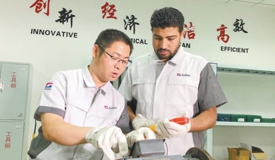 中國師傅們的悉心教導(dǎo),讓埃方員工對中國感情愈加深厚。烏薩馬表示,自己能從零開始當(dāng)上部門副經(jīng)理,特別要感謝他的中國師傅沈林洪?!皫煾翟诠ぷ魃鲜职咽謧魇诩寄?,讓我的專業(yè)技術(shù)水平逐漸提升。他在生活上也對我百般照顧,助我快速成長?!睘跛_馬說,雖然師傅現(xiàn)在已經(jīng)回國了,但他們還一直保持著聯(lián)系,“每逢春節(jié)、開齋節(jié)等兩國的重要節(jié)日,我們都會互相問候?!?/p>