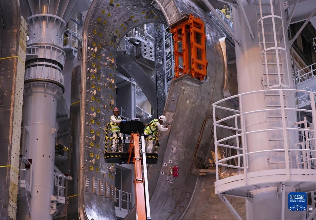 ?11月23日,工作人員在位于法國圣保羅-萊迪朗斯的國際熱核聚變實驗反應堆(ITER)的預組裝大廳里忙碌。新華社記者 高靜 攝