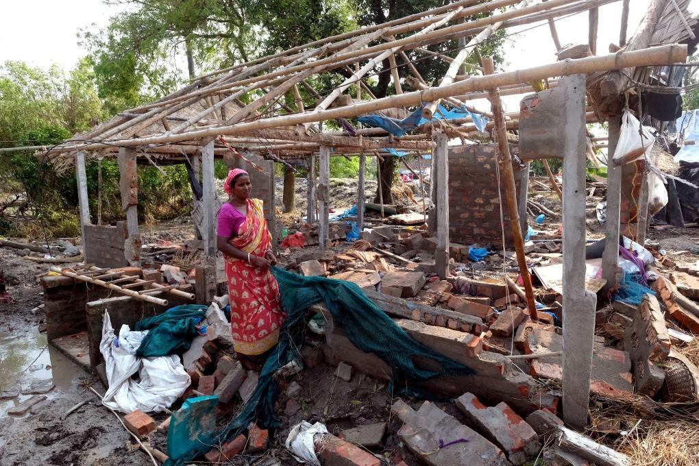 2021年5月29日,印度西孟加拉邦的一名女子站在被熱帶氣旋“亞斯”毀壞的房屋廢墟上。新華社發(fā)