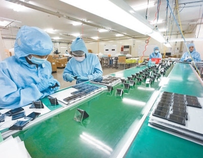龍江工業(yè)園內(nèi),方正電機(jī)(越南)有限責(zé)任公司車(chē)間里的當(dāng)?shù)貑T工正在工作。黎國(guó)忠攝