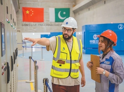 巴基斯坦首都伊斯蘭堡以東約55公里,旁遮普省北部的杰赫勒姆河上,卡洛特水電站全力發(fā)電。水電站主控室內(nèi),24歲的巴基斯坦員工坦茲爾·拉赫曼和巴中同事一起,實時觀察著電腦屏幕上顯示的水電站運行指標。