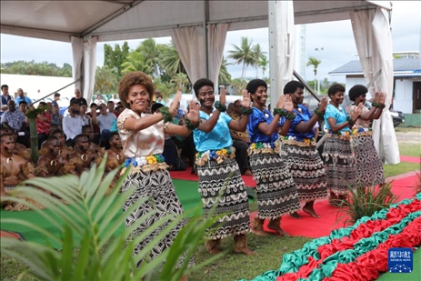 1月12日,表演者在斐濟(jì)蘇瓦的活動(dòng)現(xiàn)場(chǎng)跳傳統(tǒng)舞蹈。新華社發(fā)(桑欽龍攝)