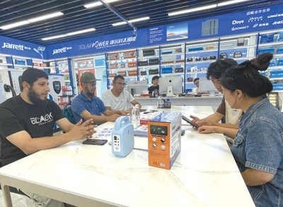 最近,埃馬紐埃爾又開(kāi)始關(guān)注新能源產(chǎn)品?!翱溌∫恍┑胤酱嬖陔娏Χ倘?、供電不穩(wěn)的問(wèn)題,很多當(dāng)?shù)厝讼M夷茉谥袊?guó)找到合適的產(chǎn)品?!睘榇?,他把目標(biāo)瞄準(zhǔn)了義烏國(guó)際商貿(mào)城的新能源產(chǎn)品市場(chǎng),尋找到一些適合喀麥隆的光伏設(shè)備?!爸袊?guó)的新能源產(chǎn)品性能可靠、性價(jià)比高,產(chǎn)品品類覆蓋領(lǐng)域廣泛?!卑qR紐埃爾表示,大到醫(yī)療機(jī)構(gòu),小到禽畜養(yǎng)殖場(chǎng),中國(guó)光伏設(shè)備供應(yīng)的電力有助于滿足當(dāng)?shù)孛癖娚a(chǎn)生活的用電需求。