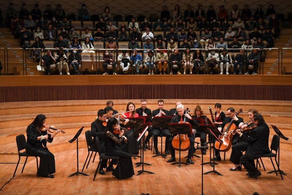 ?這是2023年11月16日拍攝的音樂(lè)會(huì)現(xiàn)場(chǎng)。當(dāng)日,“費(fèi)城之約”——費(fèi)城交響樂(lè)團(tuán)與蘇州交響樂(lè)團(tuán)室內(nèi)樂(lè)音樂(lè)會(huì)在江蘇蘇州舉行。新華社記者 李博 攝