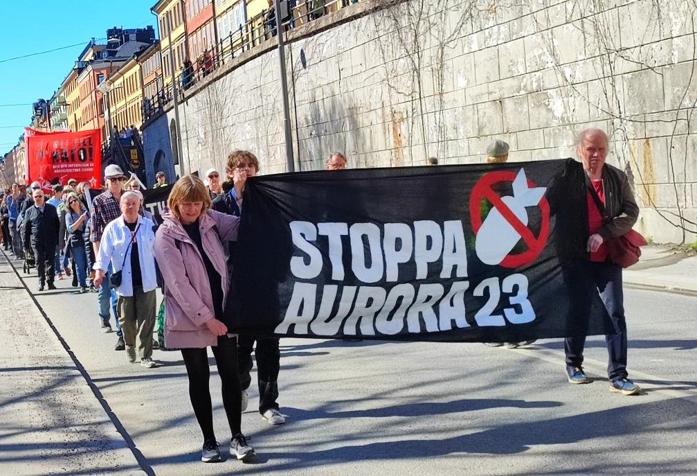 2023年4月22日,人們?cè)谌鸬渌沟赂鐮柲⒓涌棺h活動(dòng)。瑞典全國(guó)近20個(gè)城市當(dāng)日舉行活動(dòng),抗議在瑞典舉行大規(guī)模國(guó)際軍事演習(xí)、反對(duì)瑞典加入北約。新華社發(fā)(帕特里克·??怂固靥m德攝)