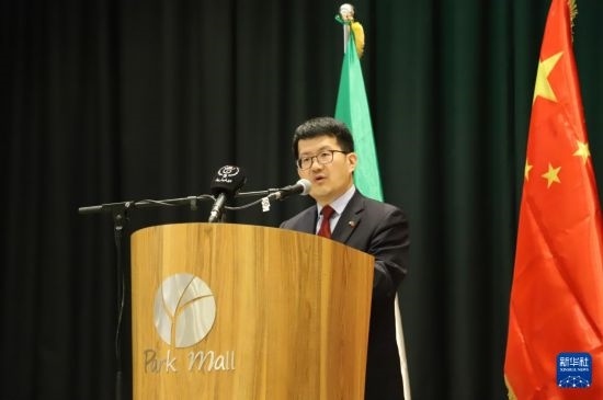 3月5日,在阿爾及利亞塞提夫,中國駐阿爾及利亞大使李健在論壇現(xiàn)場致辭。新華社記者 吳天雨 攝