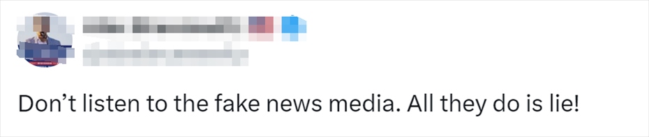 針對報道了特朗普這一言論的美國媒體,有網(wǎng)民留言:“不要聽那些虛假新聞媒體說的,他們說的都是謊言?!?/p>